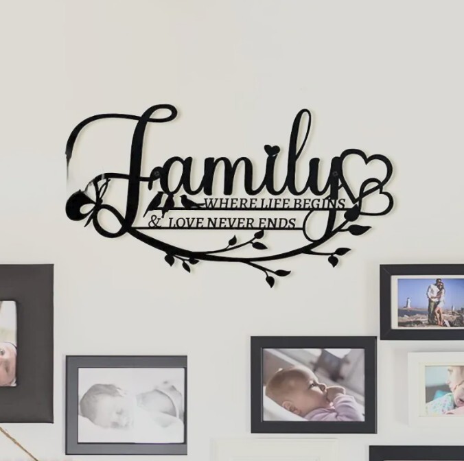 BEJNEE 的這款 Family 壁貼 以鐵板雷射雕刻、黑色烤漆完成,