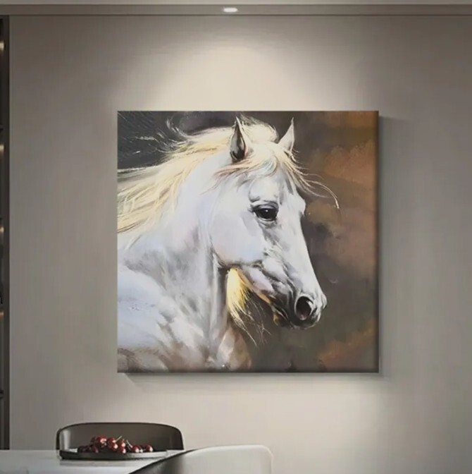 動物主題畫如白馬系列,不僅能象徵目標明確與堅定信念,也能帶來專注與力量感,是辦公空間常見的風水吉畫。