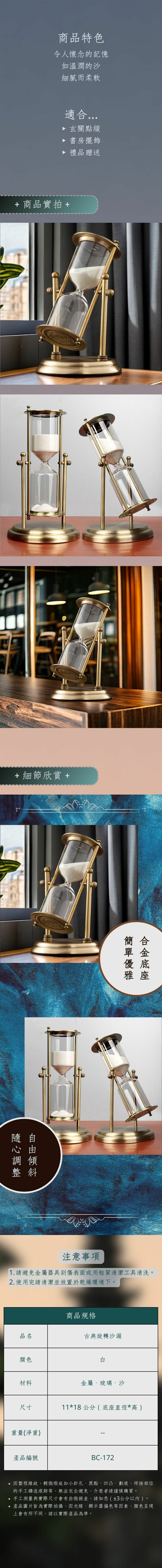設計師賦予古典計時器新的生命,採用傳統人工吹製的曲線玻璃瓶,金屬和玻璃的完美結合賦予沙漏美好的當代魅力,細緻潔白的石英砂有如流轉的歲月般美好。