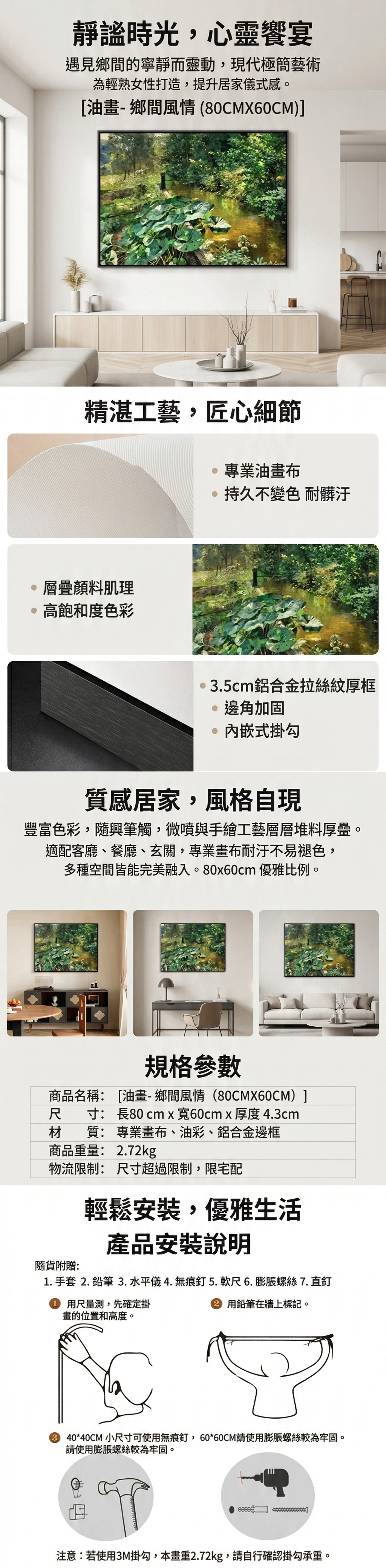 2. 如要用3M之掛畫掛勾,本商品重量為2.72kg,請自行購買適合之型號。
