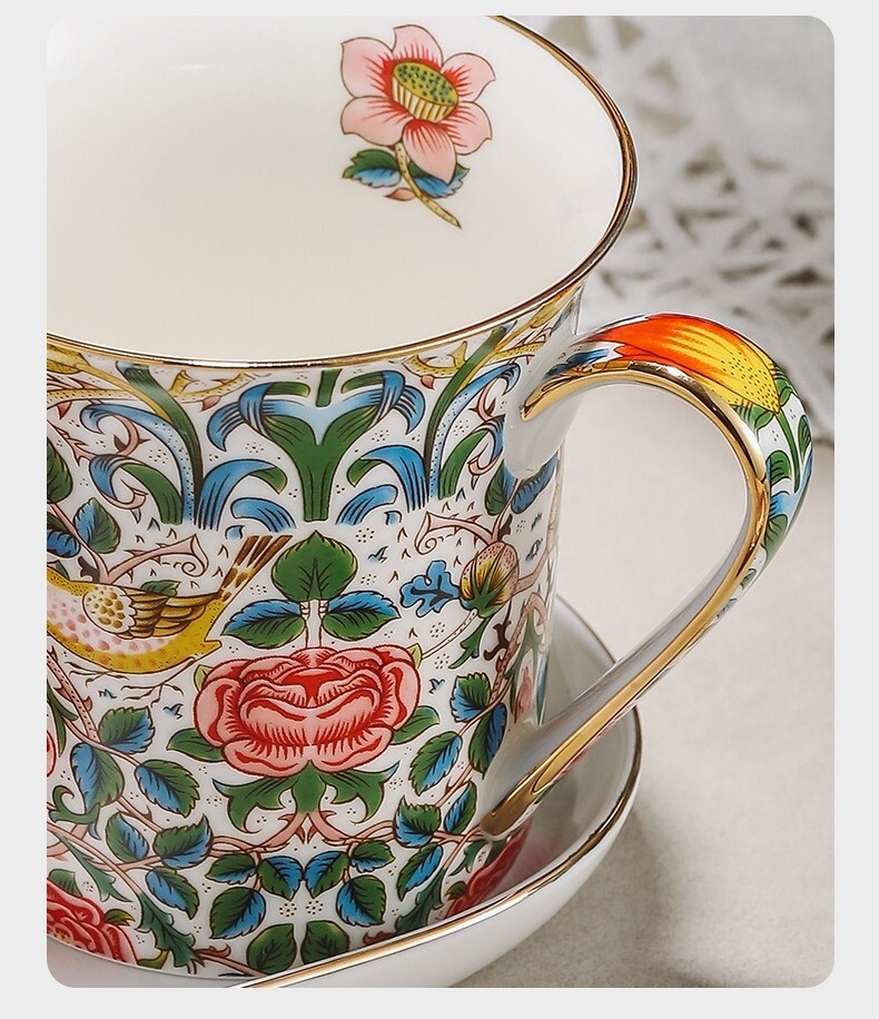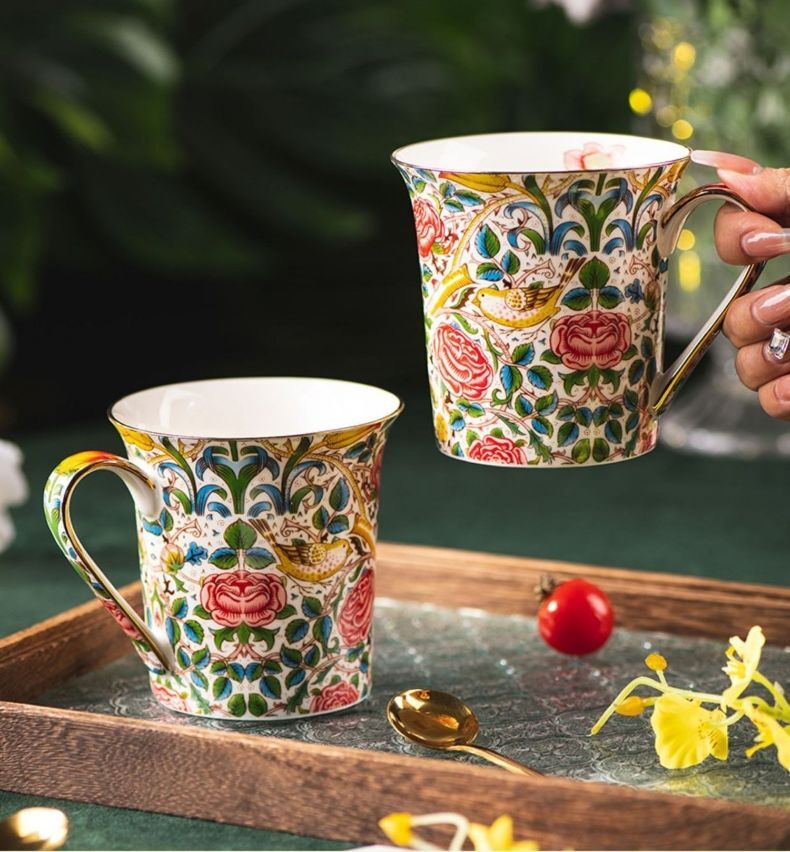 以浪漫的玫瑰花最為設計的主視覺,陶瓷材質圓潤光滑,瑩潤色澤高雅氣質,無重金屬物質的玫瑰花圖紙經過高溫燒製與瓷器融為一體不易脫落,邊緣採用德國賀利氏金釉24K,純度高不發黑,光澤璀璨細膩均勻,奢華有質感。