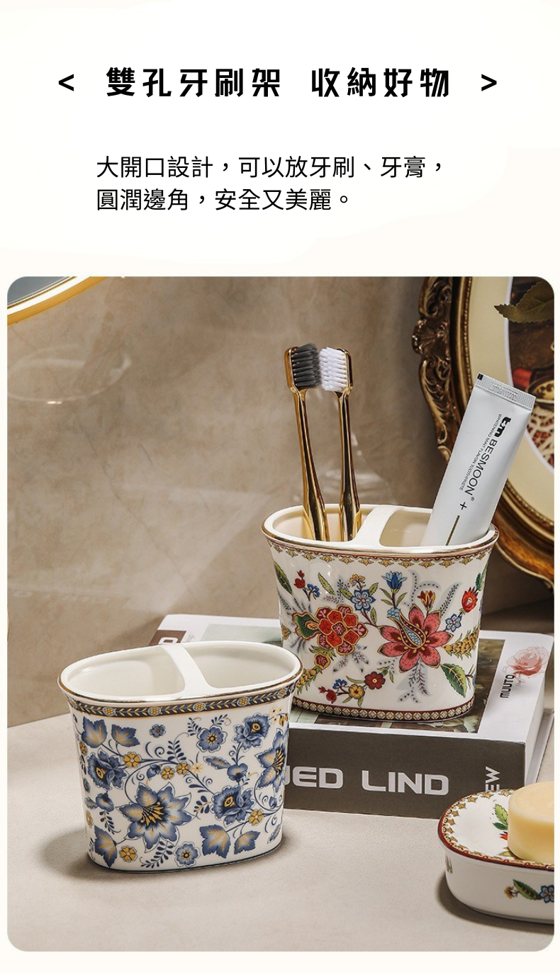 牙刷架設計大口徑的開口容易清潔底部,也可以放置電動牙刷。