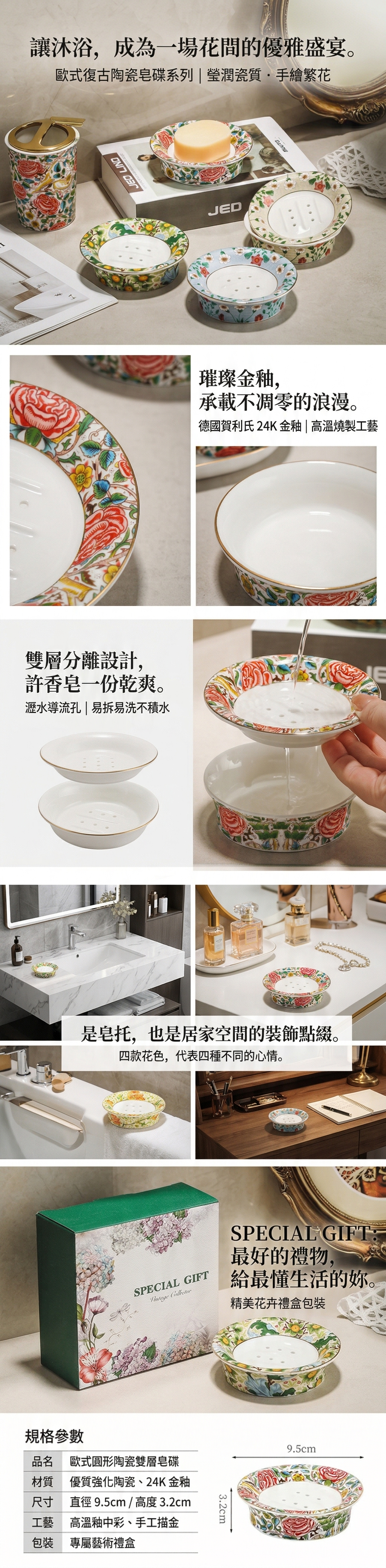 皂碟: 9.5cm x 3.2cm