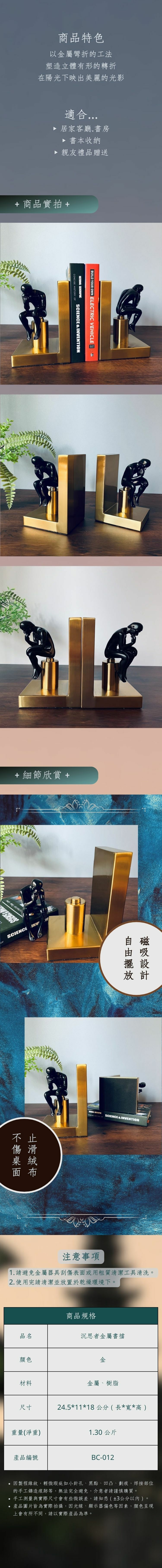 華麗的金屬製書擋豐厚穩重的質感,沉思者的人物以磁鐵吸附底座的獨特設計可以轉換不同的方向,是個具有巧思的書擋家飾工藝品。