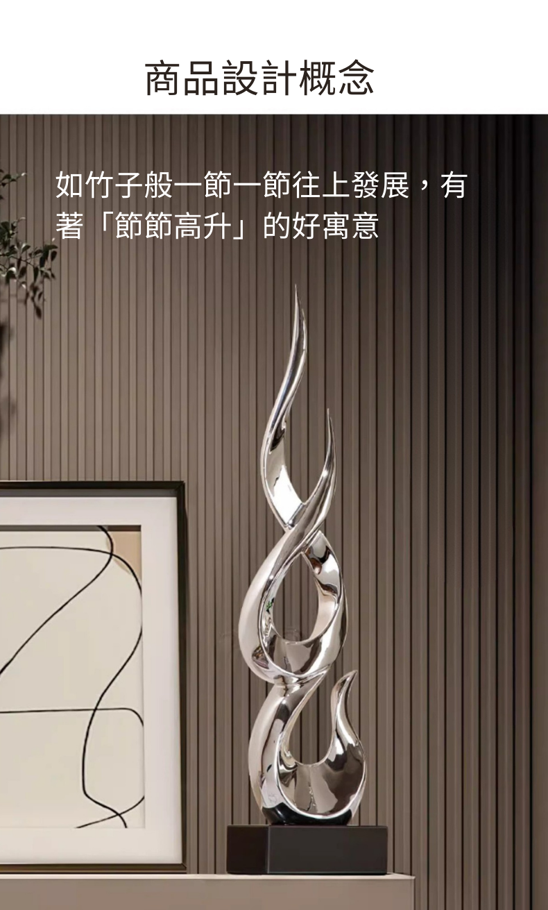 「節節高升」,是給努力生活的人,最美的祝願。這不只是一件居家擺飾, 更是一份關於成長與成就的溫暖象徵。 流線設計如微風徐來,卻帶著竹子般的傲骨與力量。無論放在書房或客廳, 它都提醒著我們:每一步的累積,都是為了成就更好的高度。
