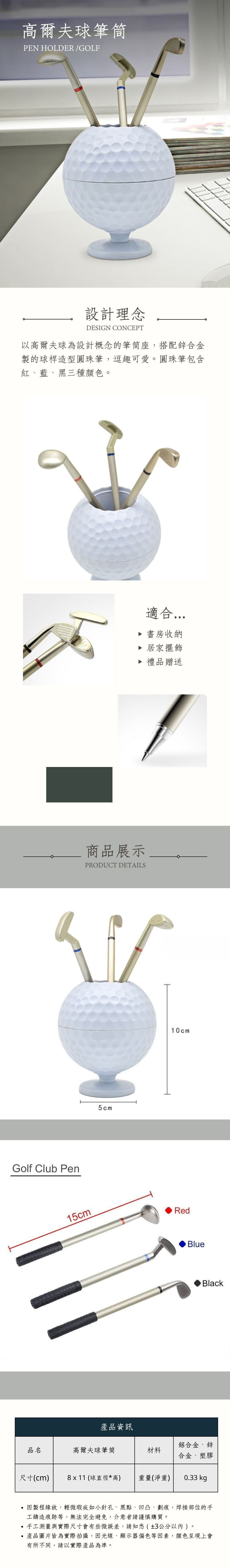 以高爾夫球為設計概念的筆筒座,搭配鋅合金製的球桿造型圓珠筆,逗趣可愛。