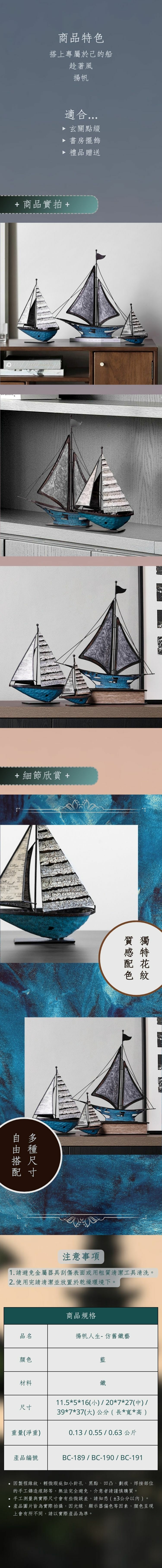人生也許正如風帆人生,在不順心如意的大小雜事裡,揚帆破浪尋找黎明與雨過天晴的蔚藍天空。 職人以手工將鐵線彎折出帆船的美麗曲線,船身敲擊出自然的紋路有如海面波光的反射,帆船的帆以斑駁的烤漆和鐵金屬的原始質感表現出風帆的波動。
