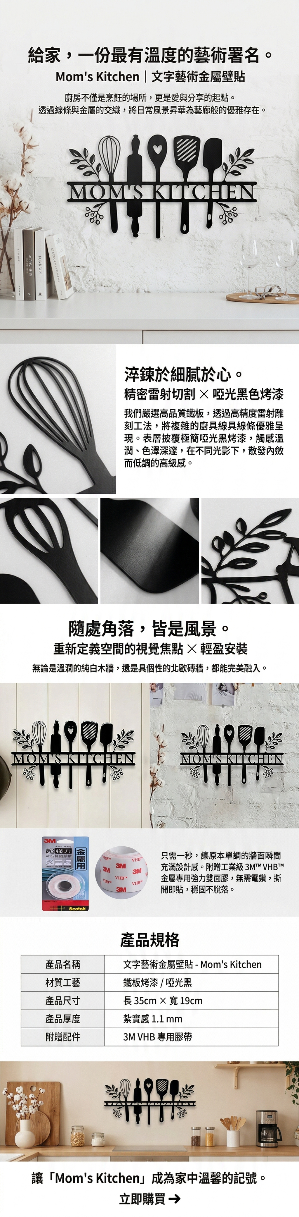 MOM'S KITCHEN 長 35cm x 寬 19cm x 厚度 1.1mm